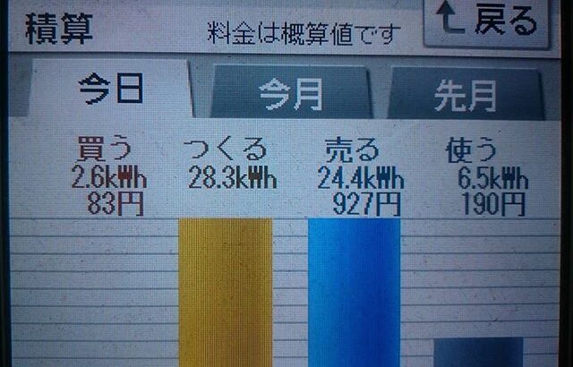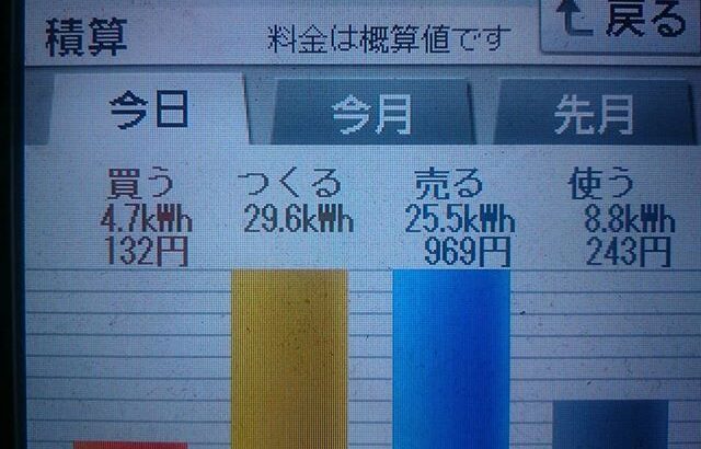 パナソニックHIT240 5kW 2018/6/29 発電が5連勝した…