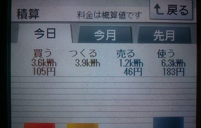 パナソニックHIT240 5kW 2018/6/20の太陽光発電量 3.9kWh…