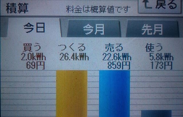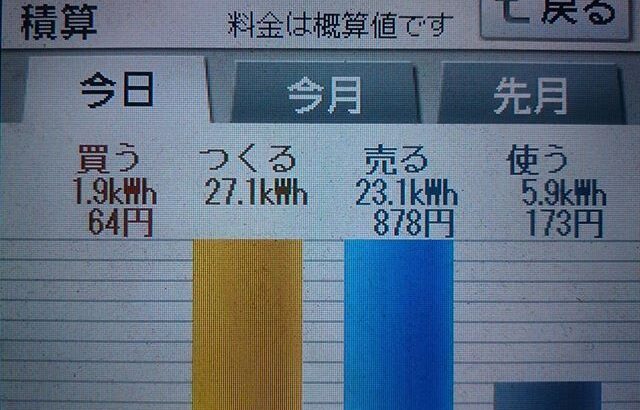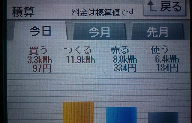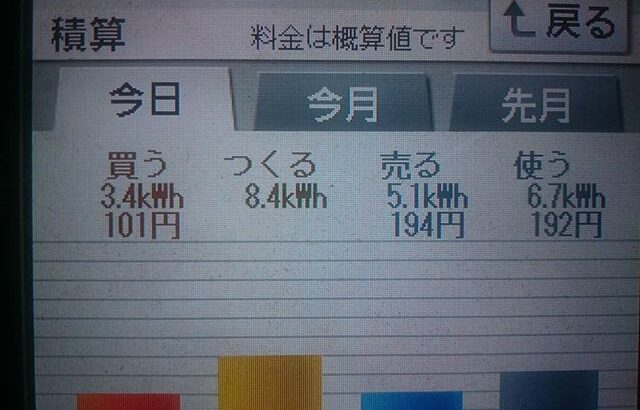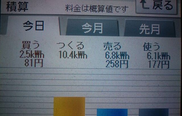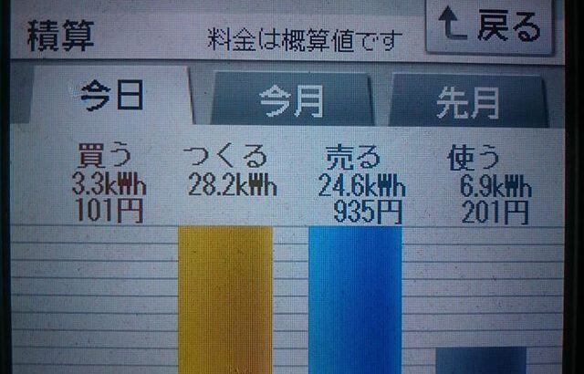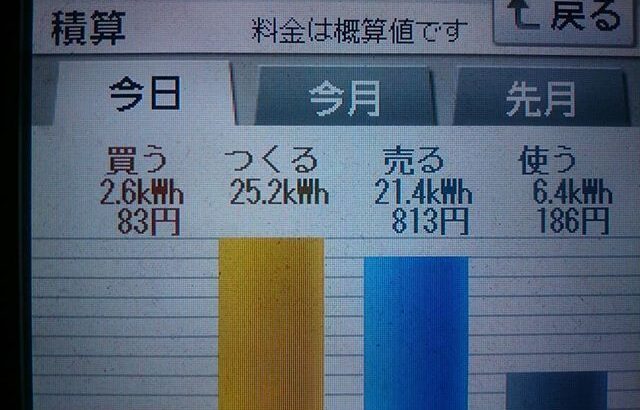パナソニックHIT240 5kW 2018/6/6の太陽光発電量 8.4kWh …