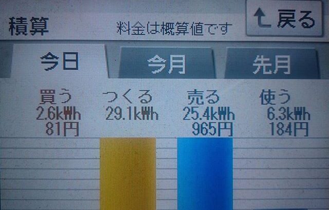 パナソニックHIT240 5kW 2018/6/4の太陽光発電量 29.1kWh…