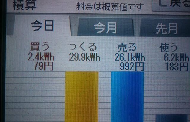 パナソニックHIT240 5kW 2018/6/2の太陽光発電量 29.9kWh…