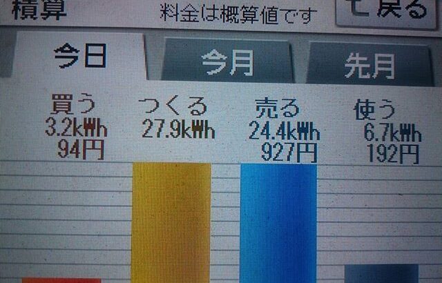 パナソニックHIT240 5kW 2018/4/20の太陽光発電量 27.9kW…