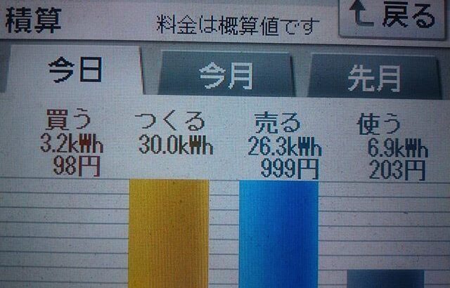 パナソニックHIT240 5kW 2018/4/28の太陽光発電量 29.6kW…