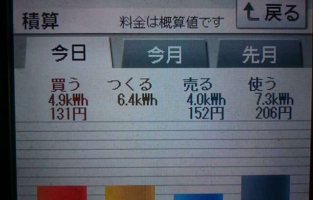 パナソニックHIT240 5kW 2018/4/25の太陽光発電量 6.4kWh…