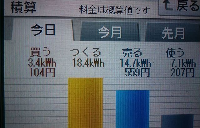 パナソニックHIT240 5kW 2018/4/27の太陽光発電量 18.4kW…