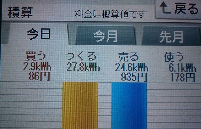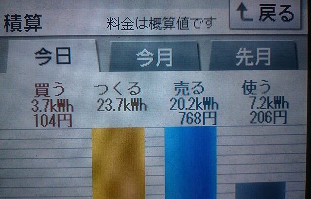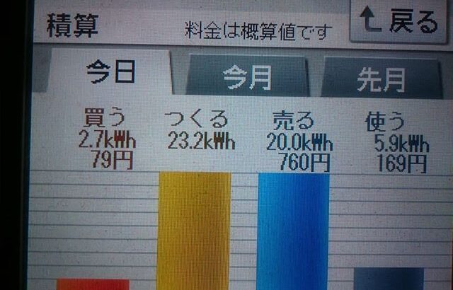 パナソニックHIT240 5kW2018/3/27の太陽光発電量 23.2kWh…
