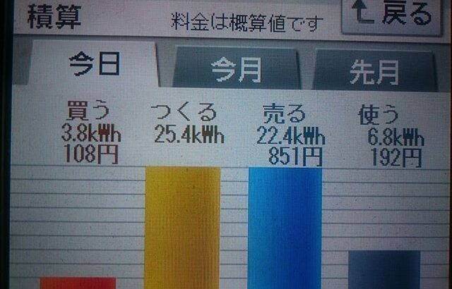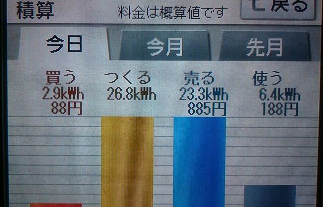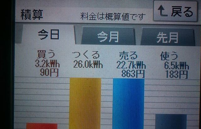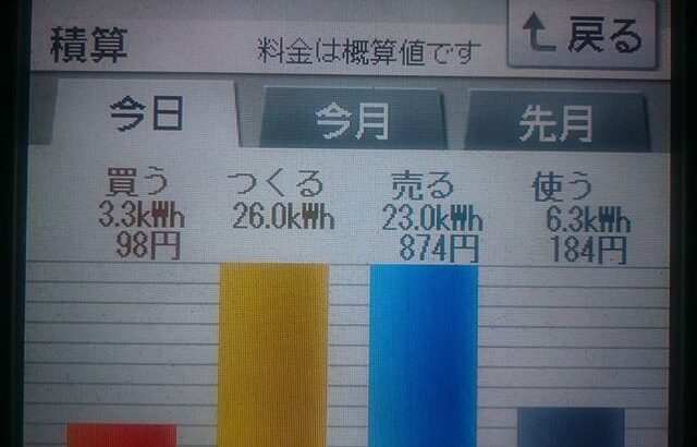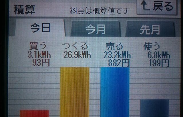 パナソニックHIT240 5kW2018/3/26の太陽光発電量 26.0kWh…