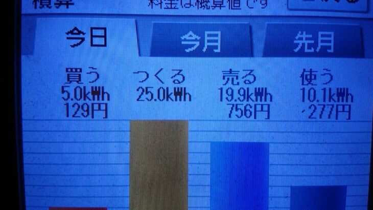 パナソニックHIT240 5kW2020/8/28の太陽光発電量 25.0kWh…