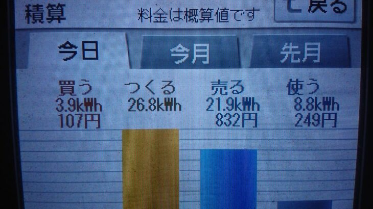 パナソニックHIT240 5kW2020/9/4の太陽光発電量 26.8kWh月…