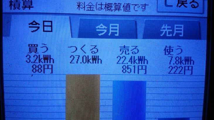 パナソニックHIT240 5kW2020/9/8の太陽光発電量 27.0kWh月…