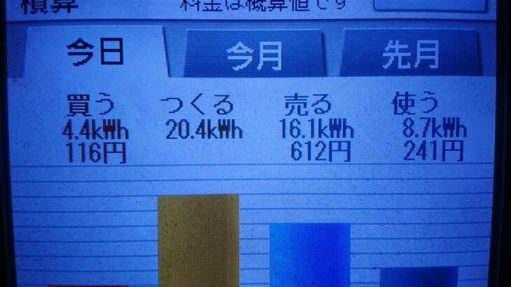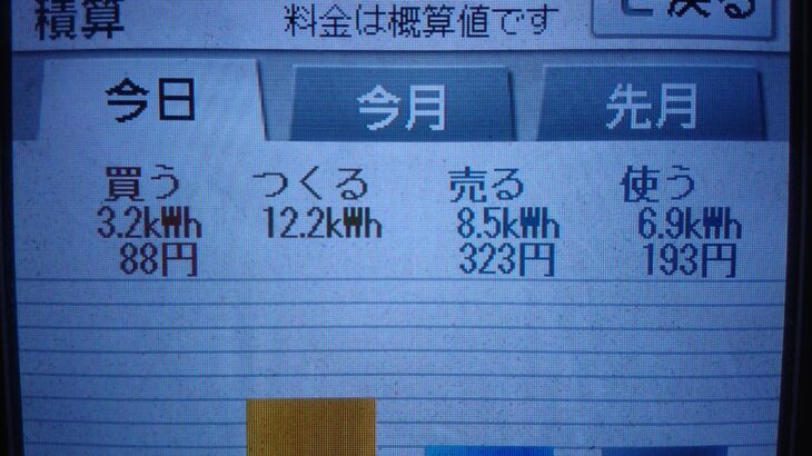 パナソニックHIT240 5kW2020/9/6の太陽光発電量 12.2kWh月…