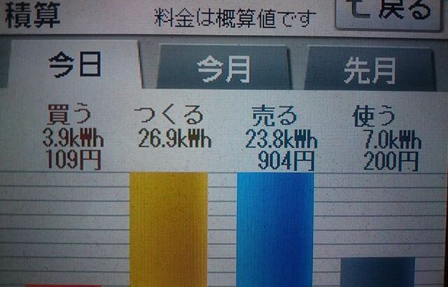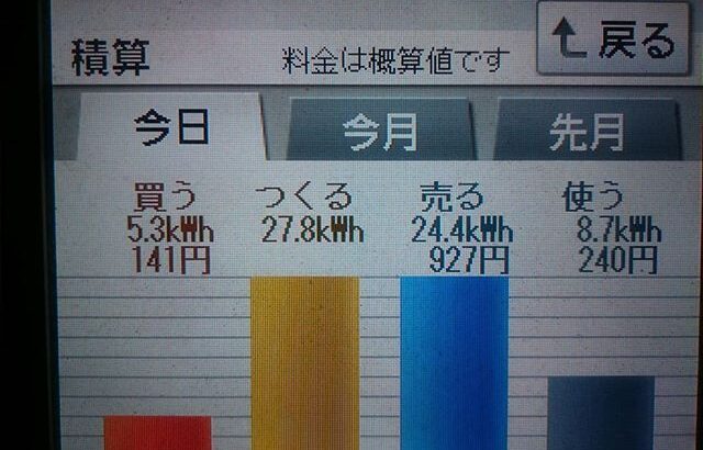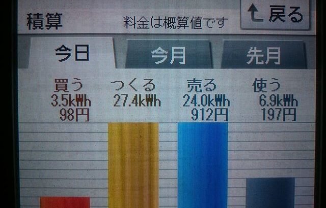 パナソニックHIT240 5kW2018/3/14の太陽光発電量 27.4kWh…