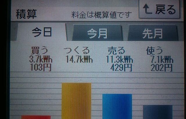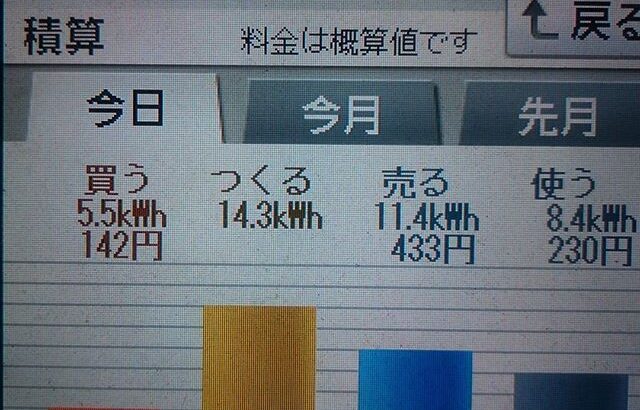 パナソニックHIT240 5kW2018/3/11の太陽光発電量 14.3kWh…