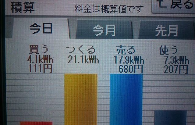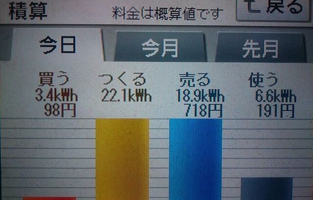 パナソニックHIT240 5kW2018/3/15の太陽光発電量 22.1kWh…