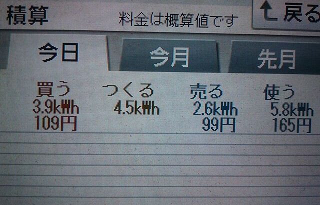 パナソニックHIT240 5kW2018/3/16の太陽光発電量 4.5kWh月…