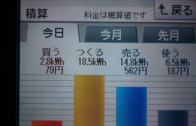 パナソニックHIT240 5kW2018/3/18の太陽光発電量 18.5kWh…