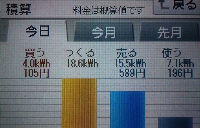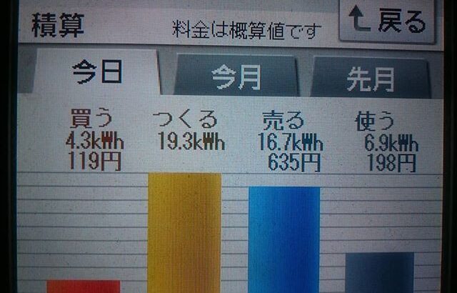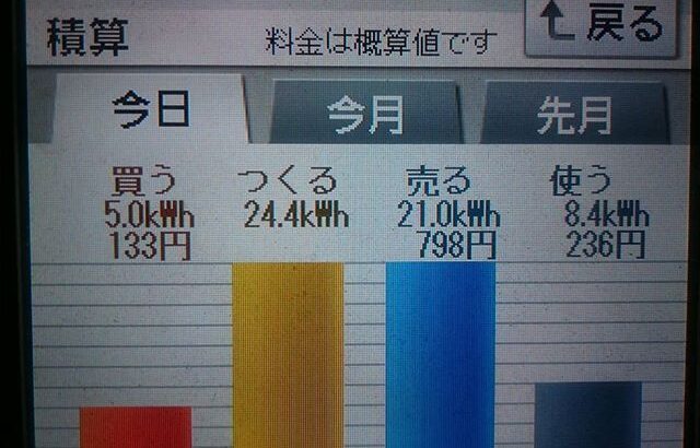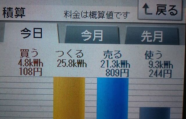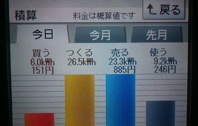 パナソニックHIT240 5kW2018/2/19の太陽光発電量 26.5kWh…