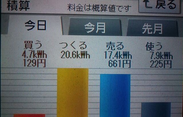 パナソニックHIT240 5kW2018/2/17の太陽光発電量 20.6kWh…