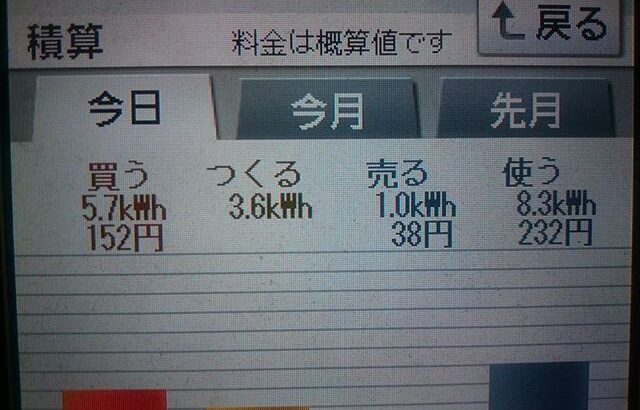 パナソニックHIT240 5kW2018/2/22の太陽光発電量 3.6kWh月…