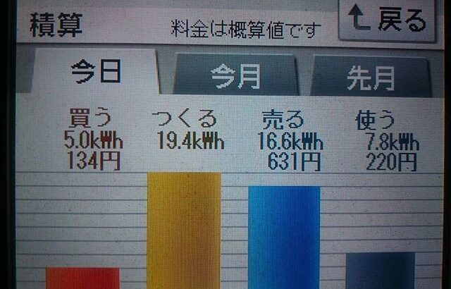 パナソニックHIT240 5kW2018/2/27の太陽光発電量 19.4kWh…