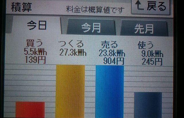 パナソニックHIT240 5kW2018/2/7の太陽光発電量 27.3kWh月…