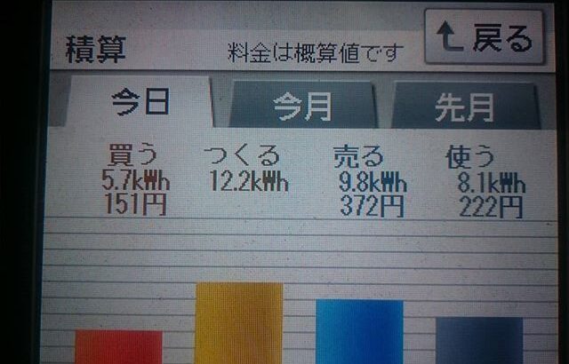 パナソニックHIT240 5kW2018/1/19の太陽光発電量12.2kWh月…