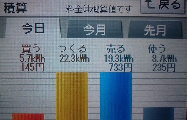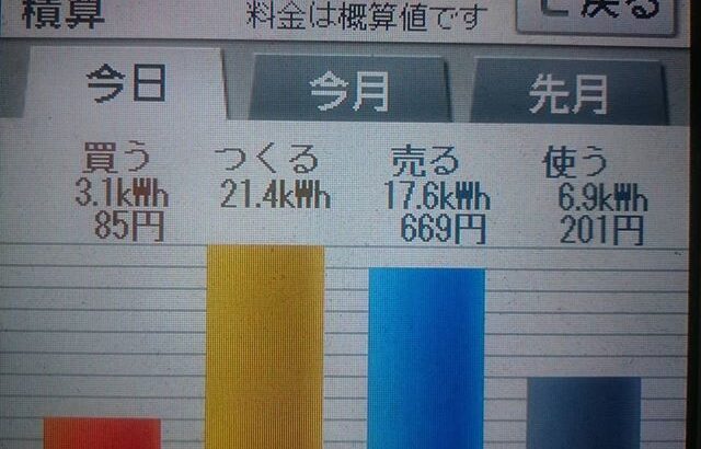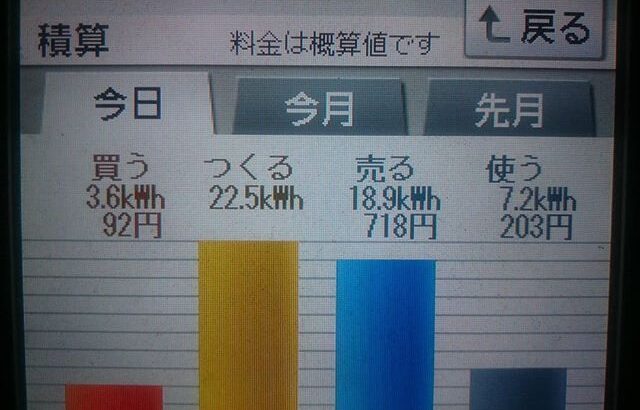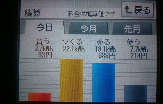 パナソニックHIT240 5kW2017/12/30の太陽光発電量22.1kWh…