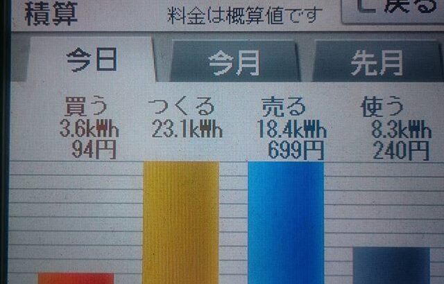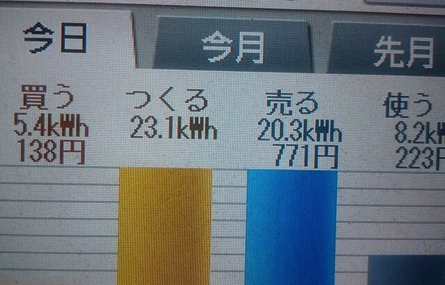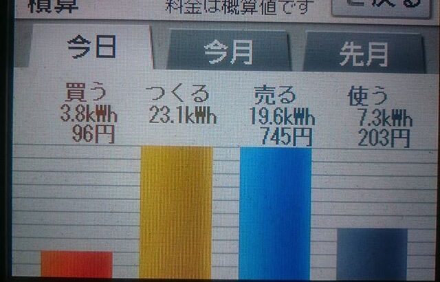 パナソニックHIT240 5kW2017/12/28の太陽光発電量23.1kWh…