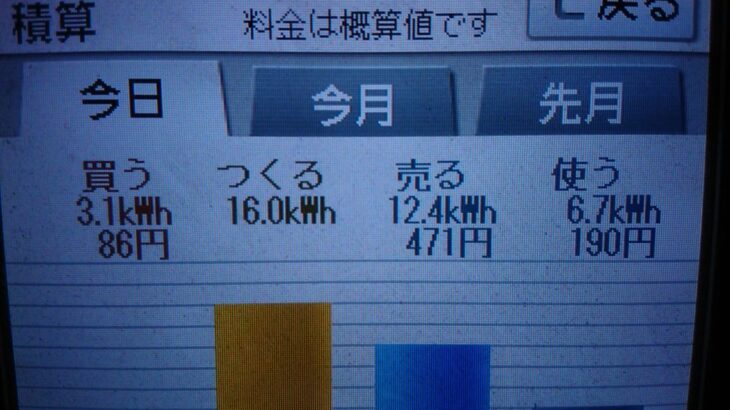 パナソニックHIT240 5kW2020/7/30の太陽光発電量 16.0kWh…