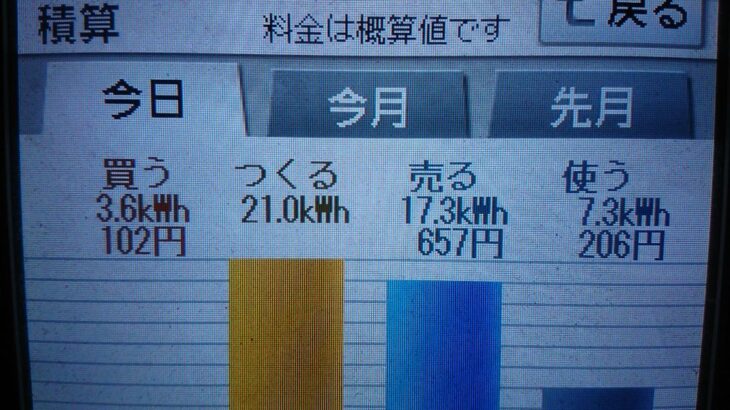 パナソニックHIT240 5kW2020/4/17の太陽光発電量 21.0kWh…