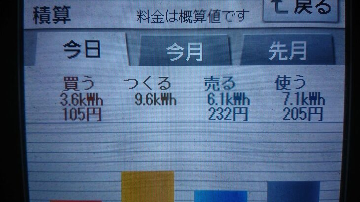 パナソニックHIT240 5kW2020/4/21の太陽光発電量 9.6kWh月…