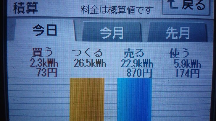 パナソニックHIT240 5kW2020/4/19の太陽光発電量 26.5kWh…