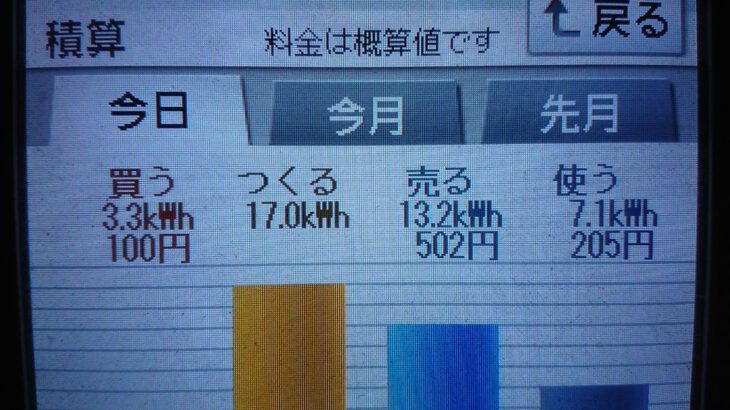 パナソニックHIT240 5kW2020/4/24の太陽光発電量 17.0kWh…