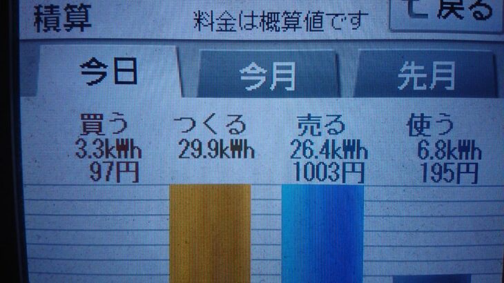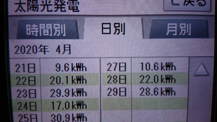 パナソニックHIT240 5kW2020/4/23の太陽光発電量 29.9kWh…