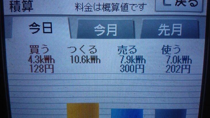 パナソニックHIT240 5kW2020/4/27の太陽光発電量 10.6kWh…