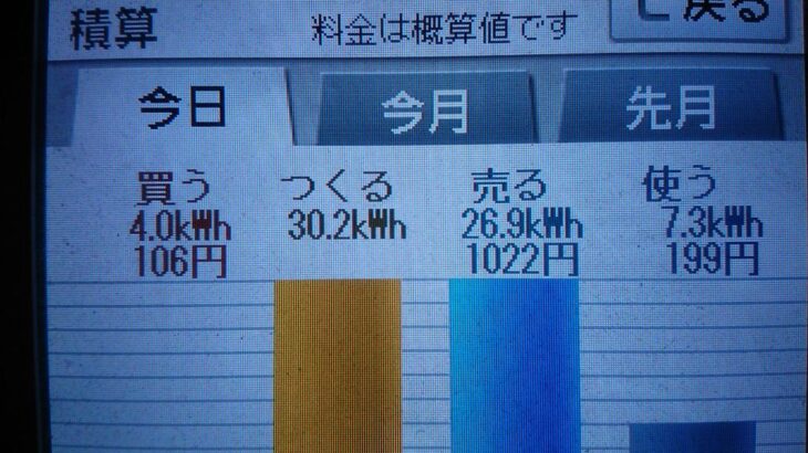パナソニックHIT240 5kW2020/3/25の太陽光発電量 30.2kWh…