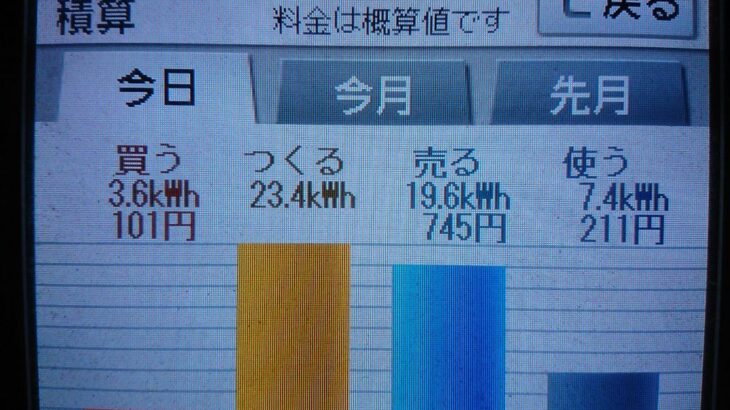 パナソニックHIT240 5kW2020/3/24の太陽光発電量 23.4kWh…