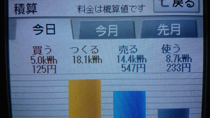 パナソニックHIT240 5kW2020/3/30の太陽光発電量 18.1kWh…