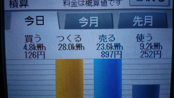 パナソニックHIT240 5kW2020/3/26の太陽光発電量 28.3kWh…