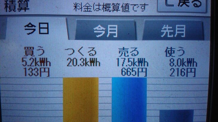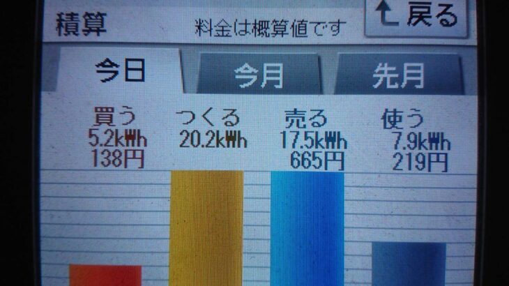 パナソニックHIT240 5kW2019/12/5の太陽光発電量 20.2kWh…
