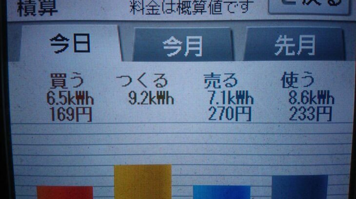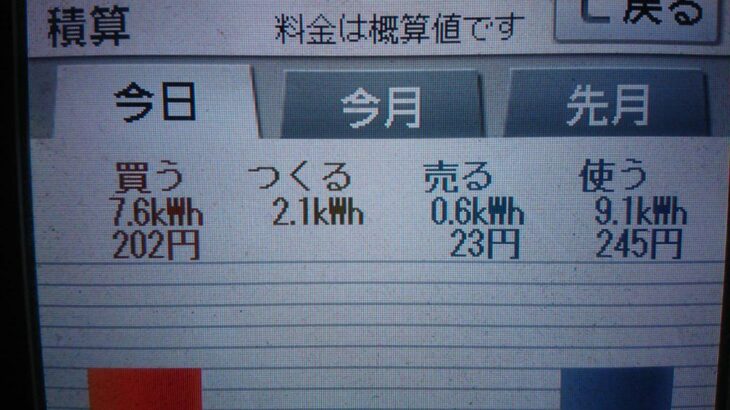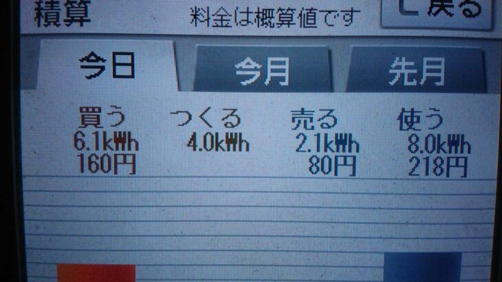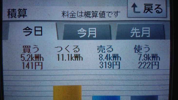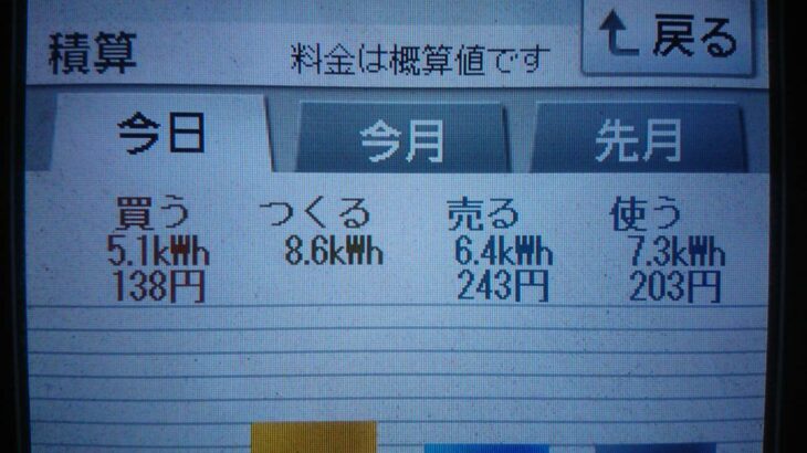 パナソニックHIT240 5kW2019/12/11の太陽光発電量 8.6kWh…