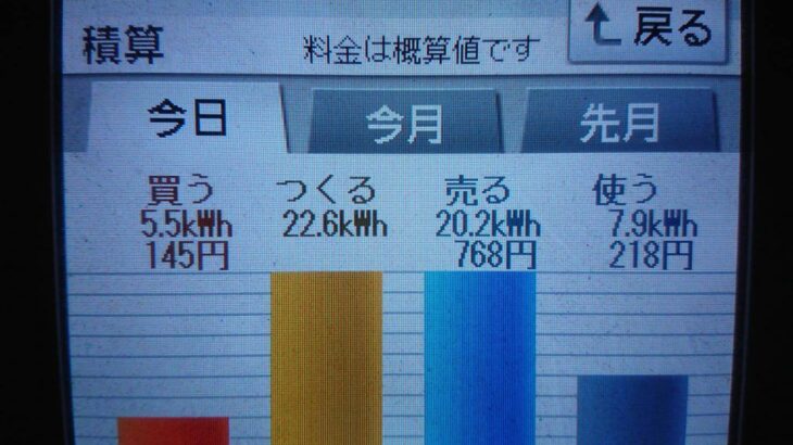 パナソニックHIT240 5kW2019/12/3の太陽光発電量 22.6kWh…