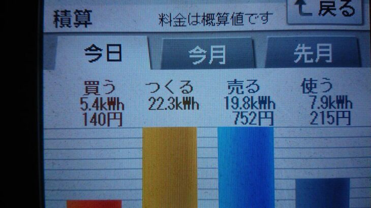 パナソニックHIT240 5kW2019/12/4の太陽光発電量 22.3kWh…