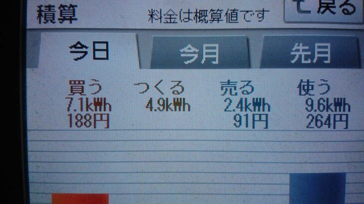 パナソニックHIT240 5kW2019/12/6の太陽光発電量 4.9kWh月…