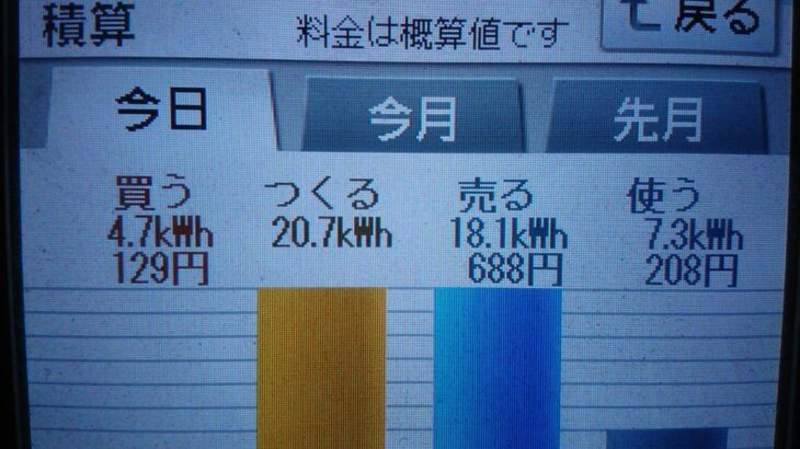 パナソニックHIT240 5kW2019/12/12の太陽光発電量 20.7kW…