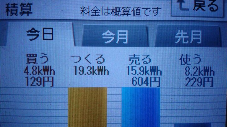 パナソニックHIT240 5kW2019/11/4の太陽光発電量 19.3kWh…