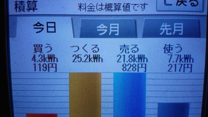 パナソニックHIT240 5kW2019/11/5の太陽光発電量 25.2kWh…
