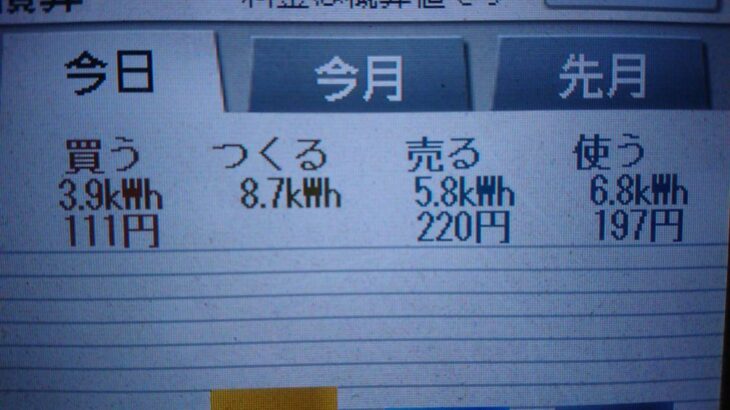 パナソニックHIT240 5kW2019/10/8の太陽光発電量 8.7kWh月…