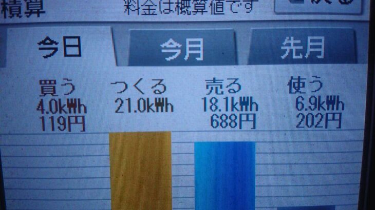 パナソニックHIT240 5kW2019/10/10の太陽光発電量 21.0kW…