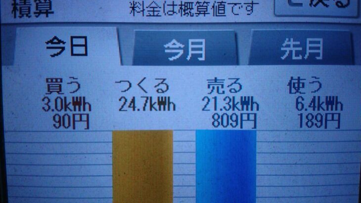 パナソニックHIT240 5kW2019/10/23の太陽光発電量 24.4kW…
